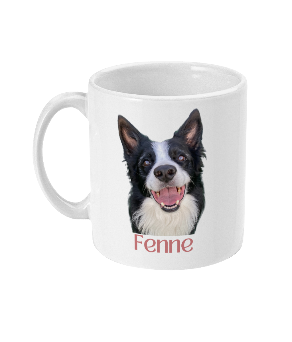 - Als je de mok in je linkerhand vasthebt zie jij jouw hond (met de naam van jouw hond)